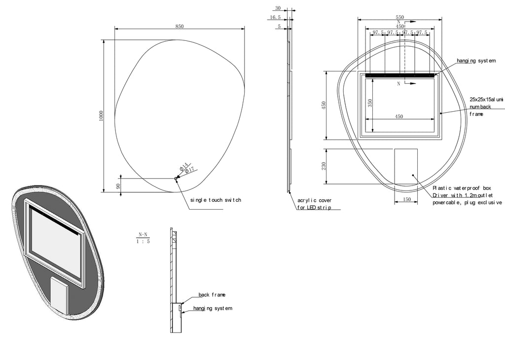 Ellva spiegel organisch met LED, dimbaar en spiegelverwarming 85 x 100 cm