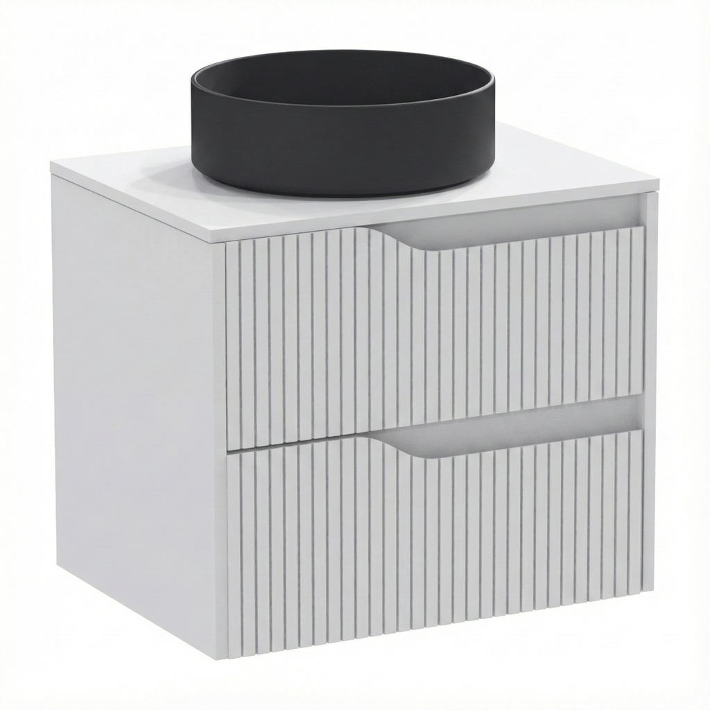bm Soho 60 white 2 drawer-worktop-surface-washbasin matt-black