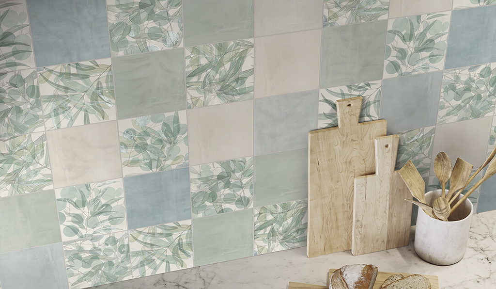 Wall tile Flora Mix 20x20 cm Square - Ceramic Matt - Decor Pattern tile green