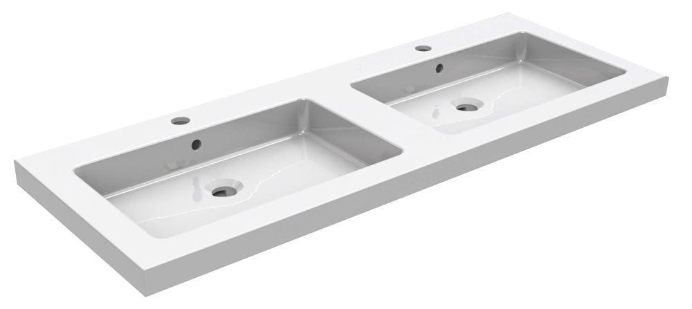 Kera lavabo double avec 2 trous de robinetterie 120x46x5 cm céramique blanc brillant