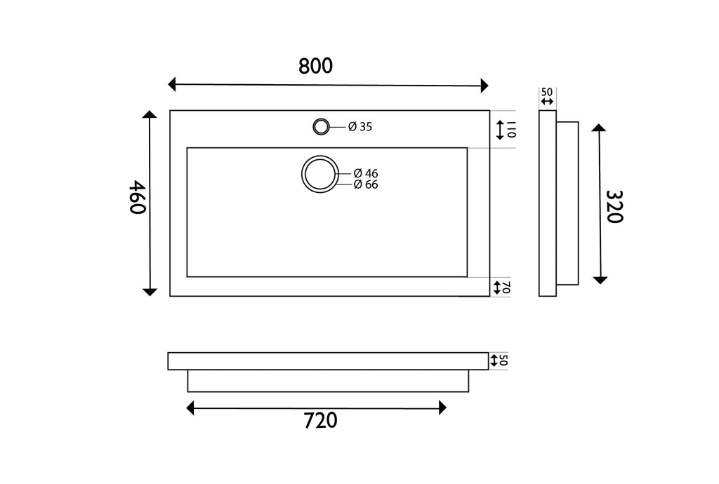 ✅ Évier spacieux avec un trou de robinetterie, 80x46 cm
