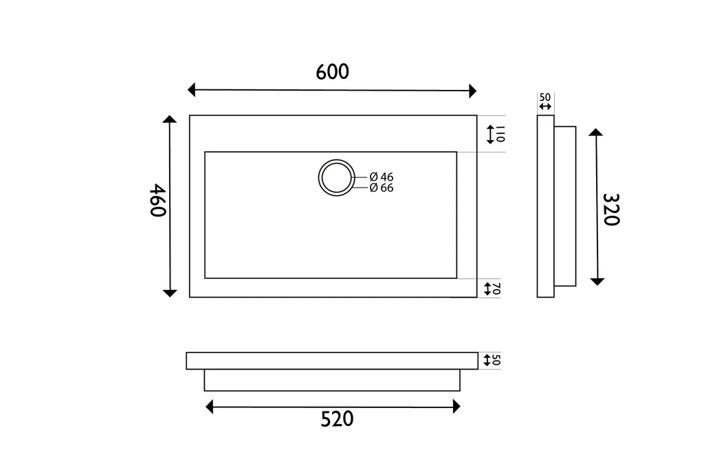 Lavabo brut simple sans trou pour robinetterie 60x46x5 cm pierre bleue polie