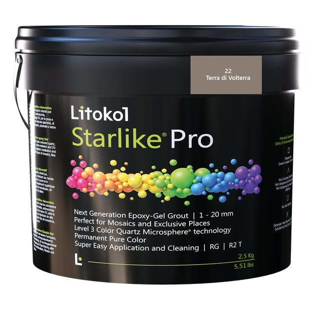 Le Litokol Starlike® Pro de couleur Terra di Volterra (22) est un joint époxy décoratif de 6ème génération qui combine esthétique et performance technique au plus haut niveau. La couleur brun terreux intense de la terre cuite toscane, réunie dans une teinte qui transforme votre carrelage ou votre maçonnerie en un ensemble fini. Avec 200 millions de microsphères de quartz colorées par kilogramme et une étanchéité de ≤ 0,1 g (EN 12808-5), ce produit offre à la fois une profondeur visuelle et une durabilité sans compromis.