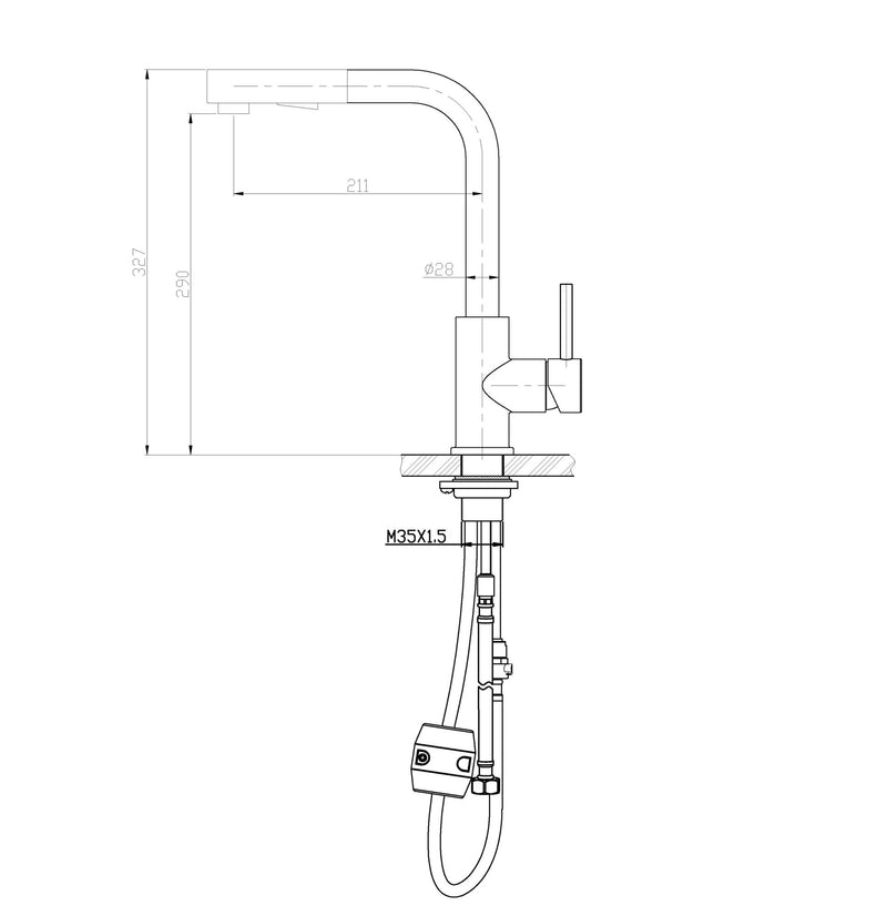 Reno Twenty keukenkraan met coldstart en uittrekbare handdouche geborsteld RVS