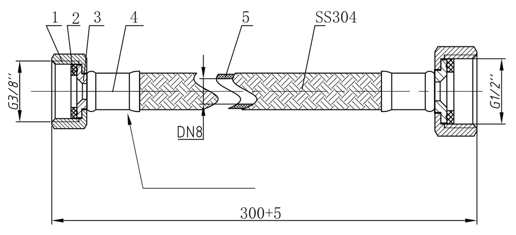 Flexibele aansluitslang nylon 1/2" x 3/8" 30 cm mat zwart