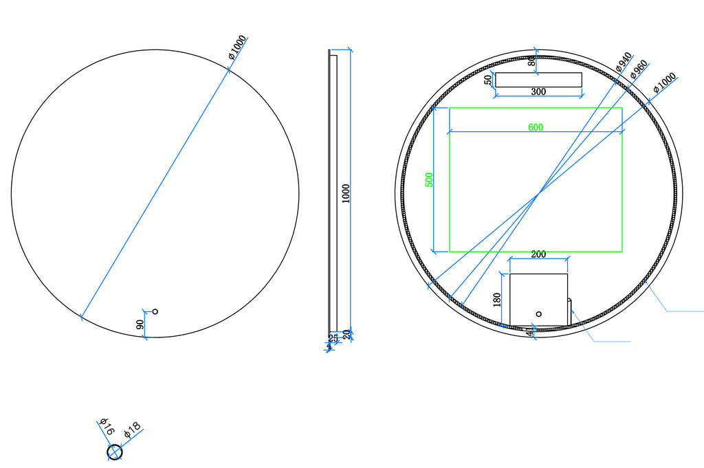 Giro spiegel rond met LED, dimbaar en spiegelverwarming 100 cm